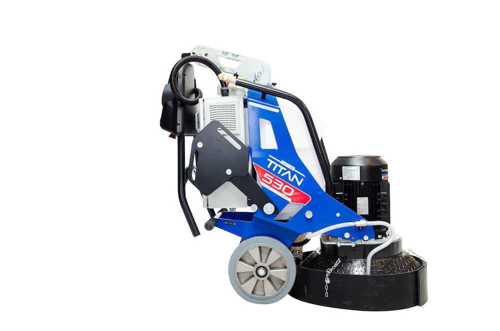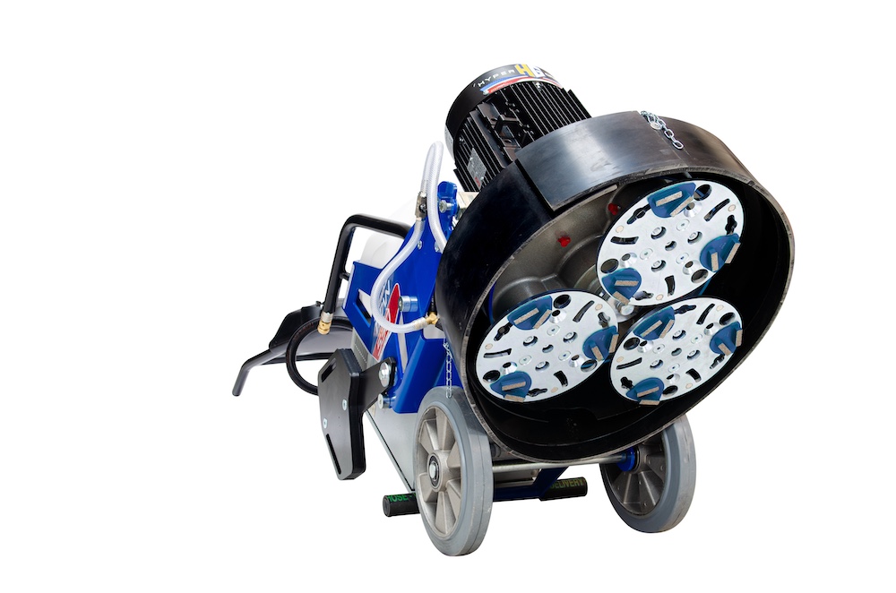Einphasige Schleif- und Poliermaschine für Marmor, Terrazzo, Granit und Betonflächen. Ausgestattet mit monodirektionalem Vollplanetengetriebe und variabler Arbeitsgeschwindigkeit.