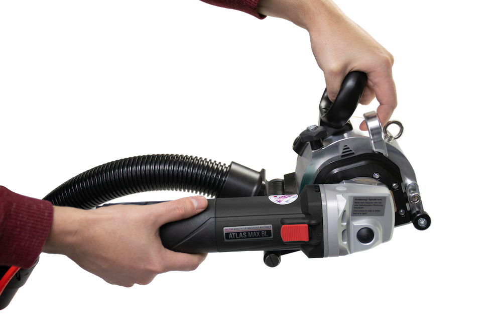 AtlasMAX82-BL – Brushless Maschinenserie – Walzenfräser (Handfräse) speziell für die Abtragung von Fliesenklebern, Beschichtungen, Spachtelmassen, …